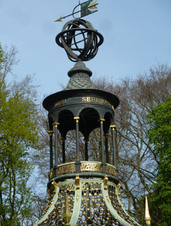 Dit schitterende rosarium, gelegen tussen het Kasteel en de Orangerie, heeft door zijn ligging een bijzondere plaats in het Kasteelpark van landgoed Nyenrode. Vele ornamenten en een uniek prieel sieren de rozentuin. In prachtige taxusbogen staan de filosoof Democritus en Heraclitus; vermoedelijk vervaardigd in de 18e eeuw en pas in de periode Onnes en Goudstikker op Nijenrode terecht gekomen. Heraclitus is een Griekse filosoof ( 590-480) en bekend door zijn citaten, parafrasen en toespelingen, waarna volop door latere filosofen verwezen werd. De vroegste verwijzing is van Plato naar Panta Choorei (alles wijkt) dat refereert aan de bekendste van Heraclitus: Panta Rhei, alles stroomt. Democritus (460-380) ook Griekse filosoof, Geleerde , astronoom en reiziger. Ook wel de lachende filosoof genoemd. Luc Stallaert, die in de vijftiger en zestiger jaren filosofie doceerde op Nijenrode genoot ervan in de zomermaanden in de schaduw van beide grootheden zijn colleges te geven.